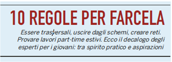 10. Essere attenti. Se non siete aperti a cogliere anche i segnali deboli che vengono dall’ambiente difficilmente potrete cogliere le migliori opportunità: siate sempre al corrente di quanto si dice all’interno dell’azienda dove siete, tenete conto dei feedback dei clienti, tenetevi aggiornati sulle evoluzioni del settore nel quale volete inserirvi. Quanti giovani che vogliono lavorare nell’ambito della comunicazione o del marketing si abbonano alle newsletter gratuite che riassumono cosa succede nel mercato?